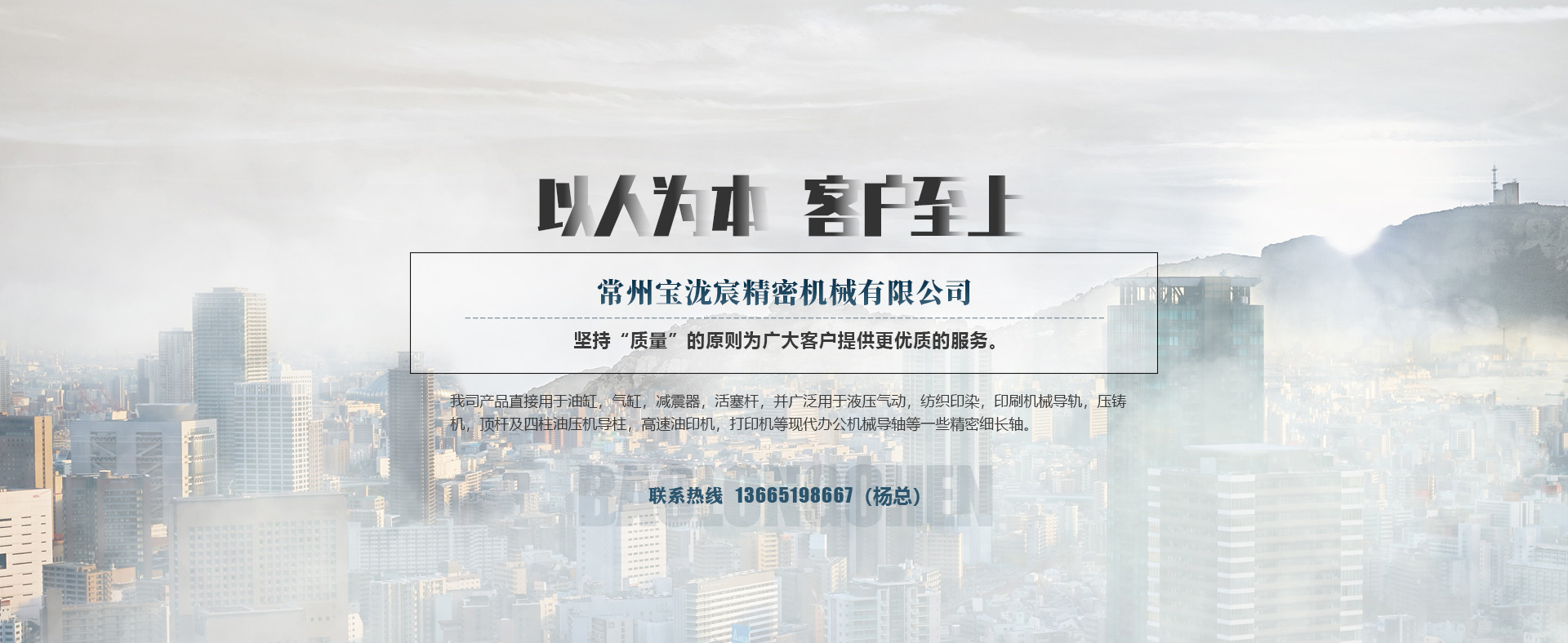 常州寶瀧宸精密機械有限公司主營活塞桿,缸筒,空心軸,調質高頻軸,導柱立柱,傳動軸,哥林柱,直線光軸,刀軸等。擁有整條生產各類軸類的設備,生產的軸直線度高,表面光潔度好,硬度均勻。本公司專注生產精密細長軸采用精密冷拔,精磨和高精度拋光的先進工藝制造,各項技術指標均符合并超過標準。我司產品直接用于油缸,氣缸,減震器,活塞桿,并廣泛用于液壓氣動,紡織印染,印刷機械導軌,壓鑄機,注塑機導桿,活塞桿,頂桿及四柱油壓機導柱,傳真機,復印機,高速油印機,打印機等現代辦公機械導軸等一些精密細長軸。公司秉承“以人為本,客戶為上”的經營理念,堅持“質量”的原則為廣大客戶提供更優質的服務。歡迎各界客戶蒞臨指導。